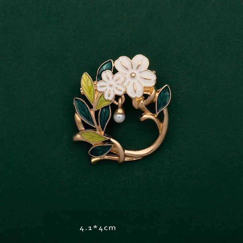 La base des broches est en alliage de zinc, ce qui permet un façonnage précis et la préservation d'un design détaillé. Il existe plusieurs modèles de motifs, principalement des feuilles et des fleurs, qui se présentent de manière élégante et universelle. Grâce aux dimensions de 2,8–9,1 cm, les broches s'adaptent aussi bien à un manteau, une veste ou une robe qu'à une écharpe ou un sac. Le motif végétal apporte légèreté et aspect naturel sans exagération. Les broches se combinent facilement avec d'autres accessoires et bijoux, créant ainsi un ensemble équilibré.