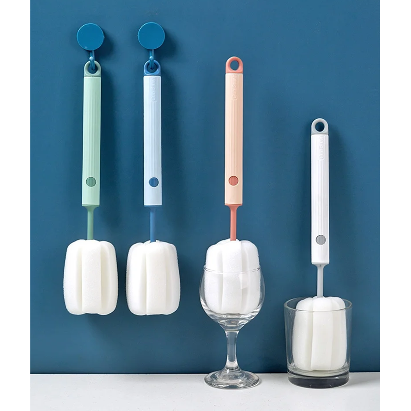 Cette brosse pratique avec une éponge douce et une longue poignée facilite le nettoyage des tasses, des verres, des thermos et des biberons sans endommager la surface. Description complète