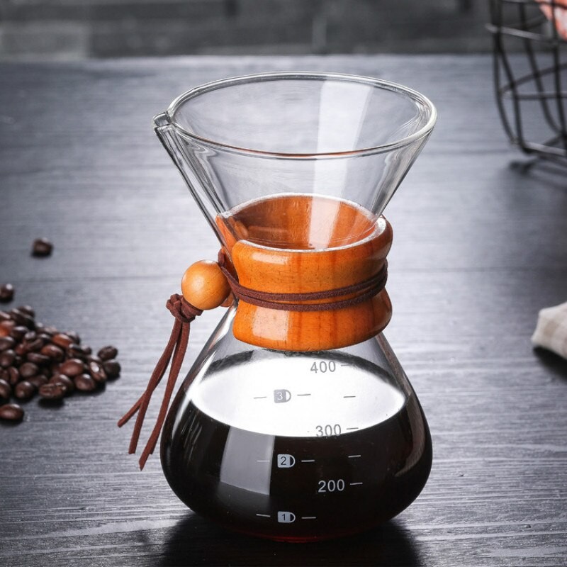 Cafetière avec un col étroit pour filtre (dripper) à café.