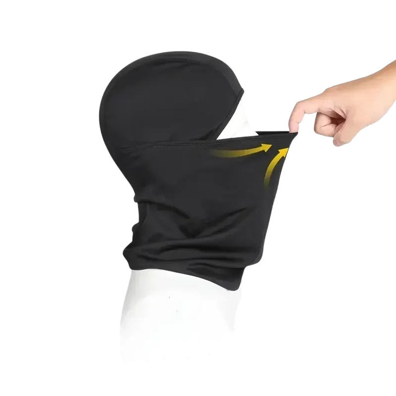 Cagoule coupe-vent en polyester protégeant la tête et le visage lors du cyclisme, de la randonnée et du ski, adaptée pour les mouvements actifs en extérieur. Description complète