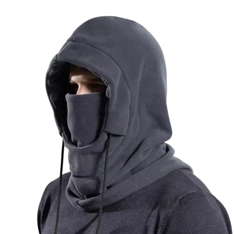 Cagoule d'hiver chaude avec capuche en polyester offrant une protection confortable de la tête, du cou et du visage lors de séjours par temps froid. Description complète