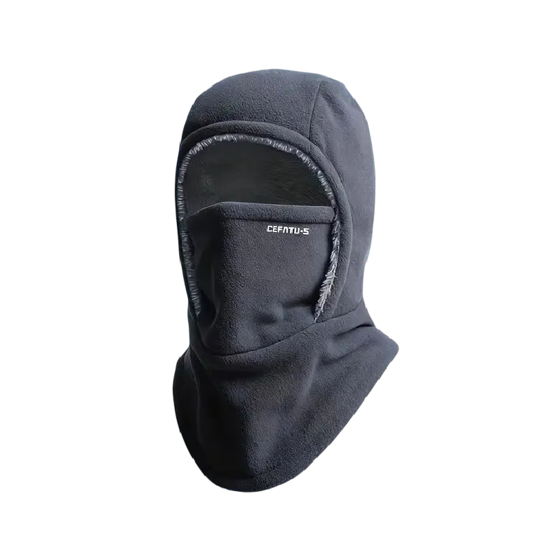 Cagoule en polaire coupe-vent en coton et polyester protégeant la tête et le visage du froid, adaptée à un port quotidien à l'extérieur. Description complète
