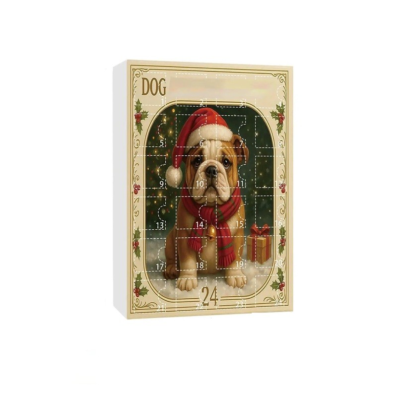 Calendrier de l'Avent avec des décorations en acrylique pour chiens apportant une surprise quotidienne. Décoration de Noël stylée pour les amoureux des chiens et de l'ambiance festive. Description complète