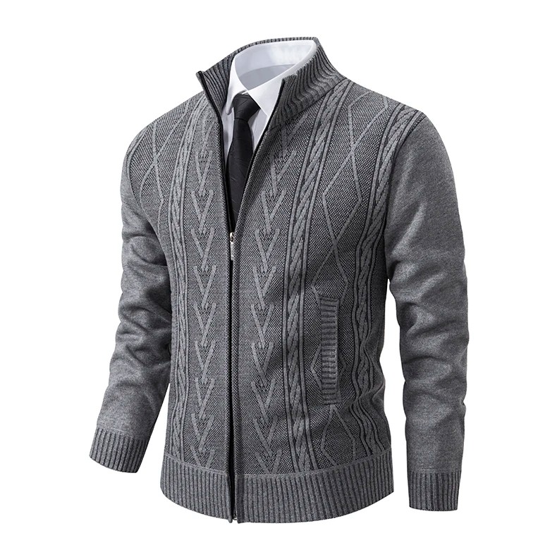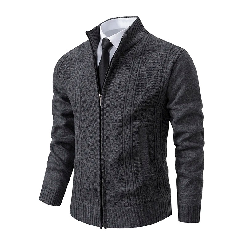 1× cardigan en tricot pour homme avec fermeture éclair et col roulé (couleur et taille choisies)