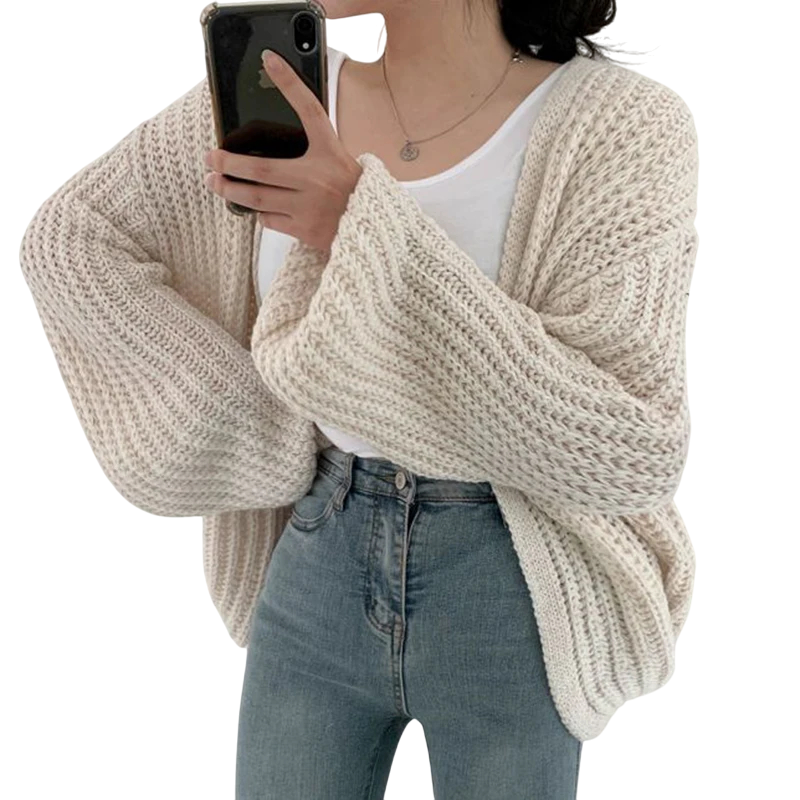 Cardigan en tricot pour femme sans fermeture en polyester Couverture élégante unie à manches longues Pull léger en taille universelle