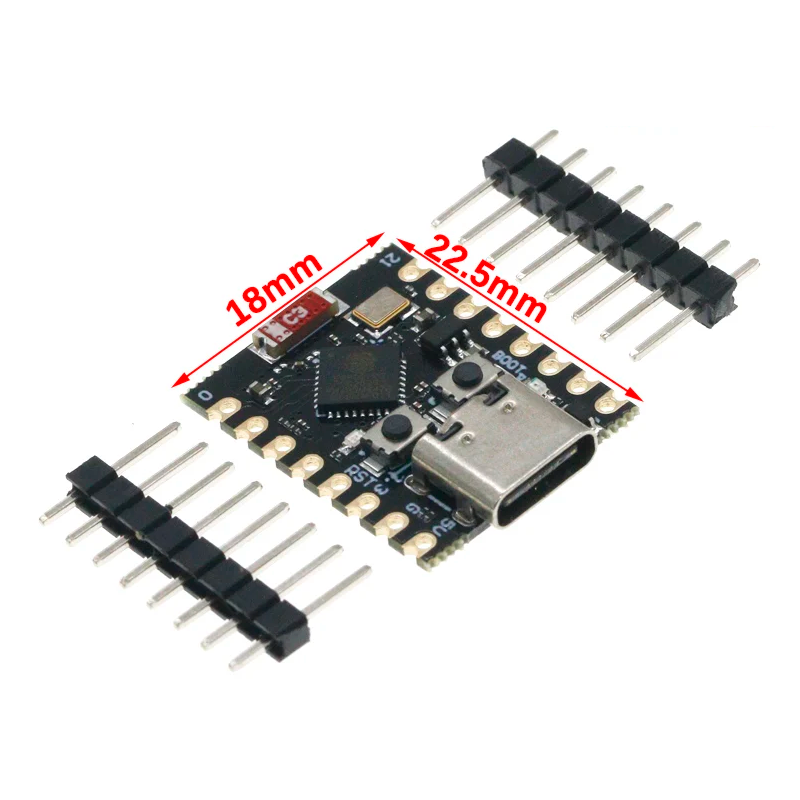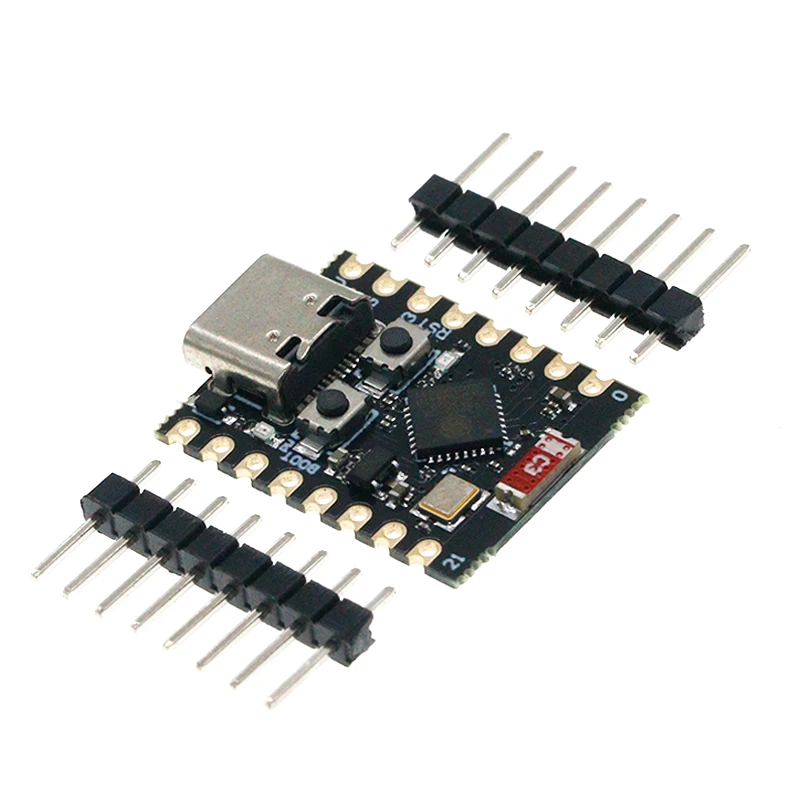 La carte est équipée de connecteurs GPIO, d'une interface USB, et d'un microcontrôleur fiable ESP32-C3 avec un cœur RISC-V. Elle permet un raccordement aisé de capteurs, relais, LED ou autres périphériques. Elle est idéale pour l'automatisation de la maison, la collecte de données, la surveillance de l'environnement et les expériences de communication sans fil.