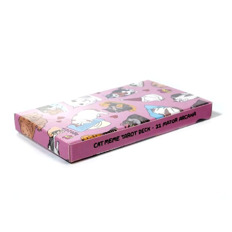 Le design du paquet est dans un style rose, agrémenté d'illustrations colorées de chats. Ce style crée une impression visuelle forte et distingue le paquet des jeux de tarot classiques. Les illustrations sont détaillées et se concentrent sur la combinaison de l'humour et de la symbolique.