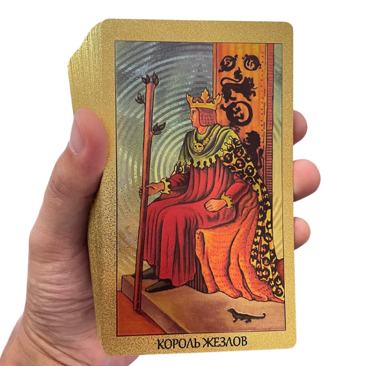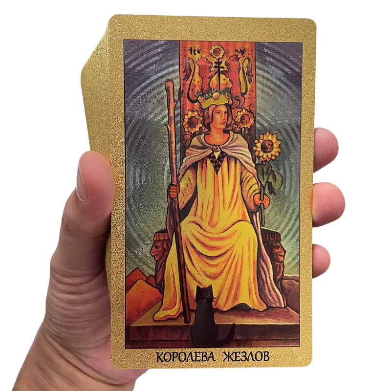 • Édition russe dorée des cartes de tarot avec un design classique