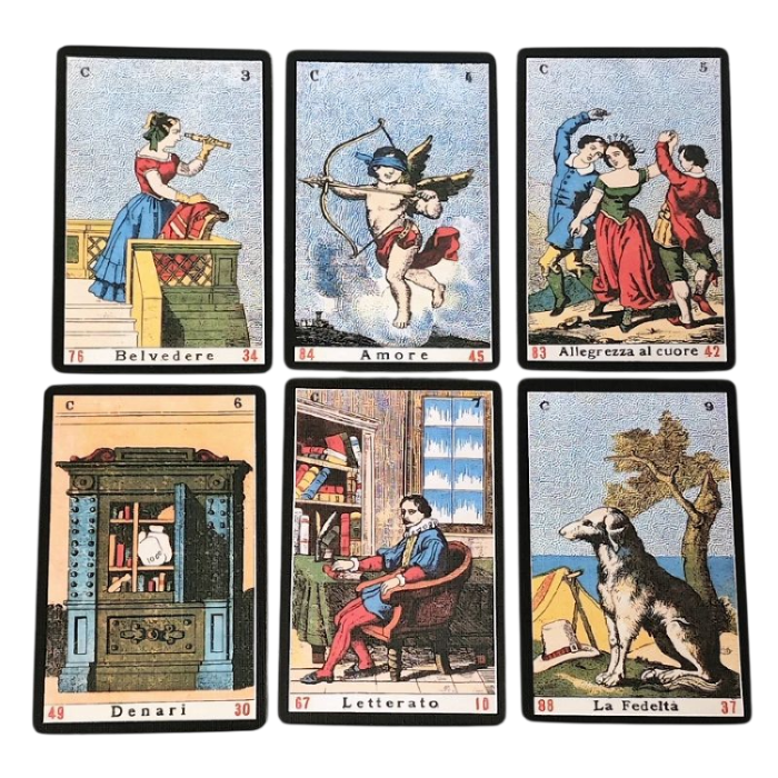 Les cartes présentent des images et des noms au style classique qui soutiennent l'orientation lors de la divination. Le style illustratif est traditionnel et clair, de sorte que les motifs individuels peuvent être facilement reconnus. Le traitement coloré aide également à distinguer les différentes cartes et met en valeur leur caractère visuel.