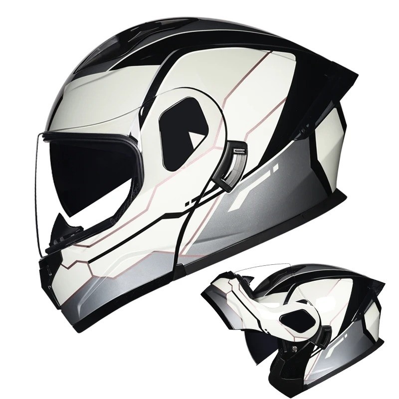 Casque de moto intégral unisexe à mentonnière ABS+PC blanc gris noir