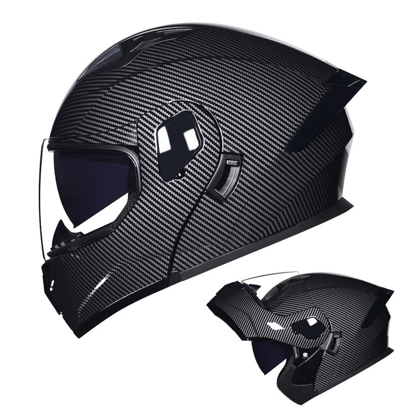 Casque de moto intégral unisexe rabattable ABS+PC noir avec un motif simple