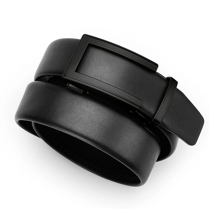 Ceinture en cuir noir pour homme avec boucle automatique Accessoire de mode élégant en cuir véritable Longueur ajustable Convient pour un costume ou une tenue décontractée