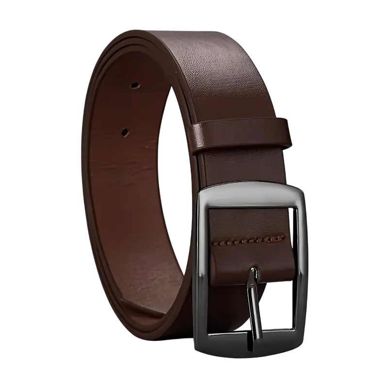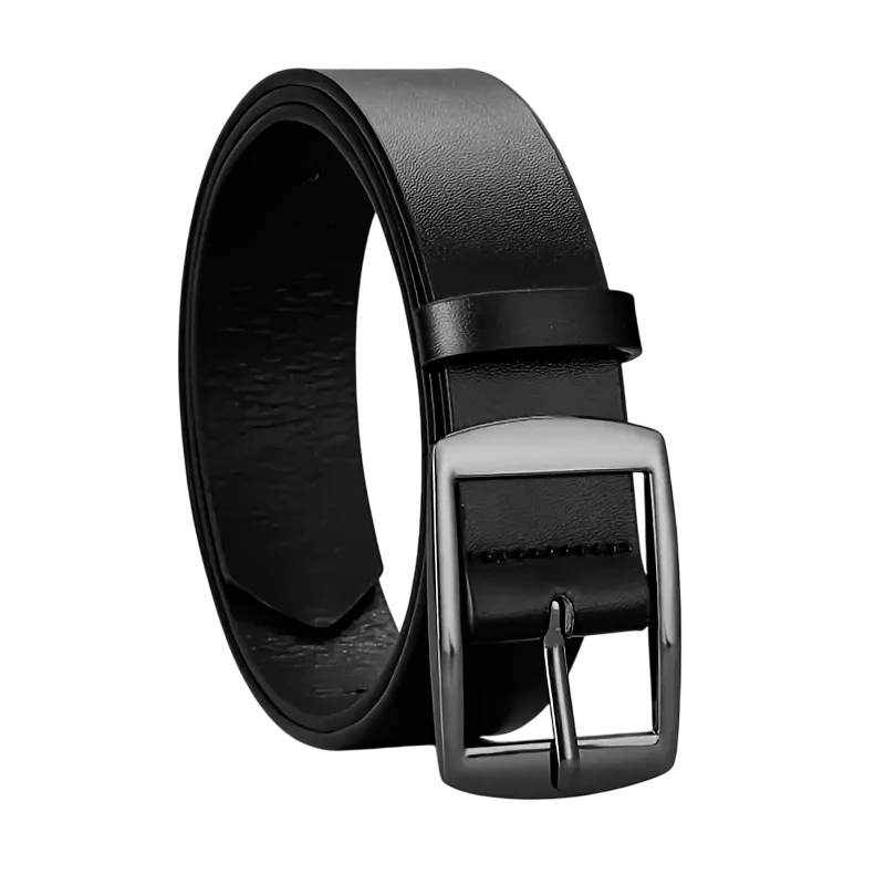 Ceinture stylée pour homme en cuir PU avec boucle en métal gris foncé. Convient pour un usage quotidien ou pour des occasions formelles. Entretien facile et longueur ajustable. Description complète