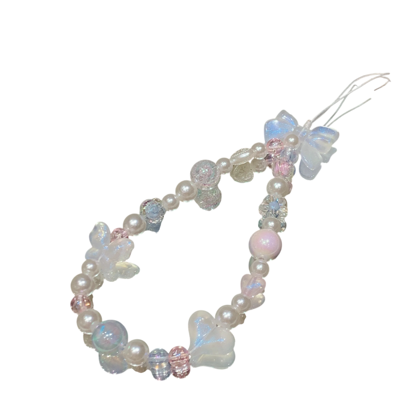 Accessoire stylé qui transforme votre téléphone en un élément de mode original tout en augmentant la sécurité lors de son utilisation. Cette chaine décorative est créée à partir d'une combinaison de perles en verre et de décorations colorées en forme de cœur, nœud, fleur et papillon. Son design délicat est à la fois élégant et ludique, ce qui le rend parfaitement adapté aux coques modernes pour téléphones mobiles.