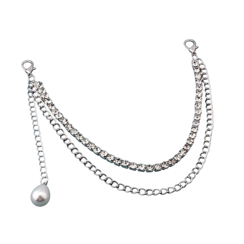 La chaîne double peut représenter un moyen simple d'ajuster l'apparence d'un sac sans avoir à remplacer l'ensemble de la sangle. La combinaison de la ligne de pierres et du pendentif en perles crée un élément décoratif marquant. La couleur argentée peut bien s'harmoniser avec différents types de sacs. Grâce aux mousquetons à chaque extrémité, la chaîne peut être facilement fixée et également rapidement retirée selon les besoins.