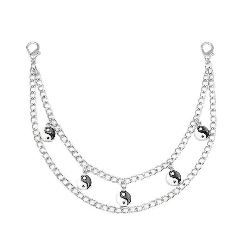 La chaîne décorative pour sac peut servir d'accessoire décoratif, ajoutant un élément métallique intéressant à l'apparence du sac. Ce modèle est composé de deux chaînes qui créent un effet superposé et donnent à l'accessoire un look distinctif. Des pendentifs avec le motif Yin Yang sont disposés sur la chaîne, créant un design caractéristique.