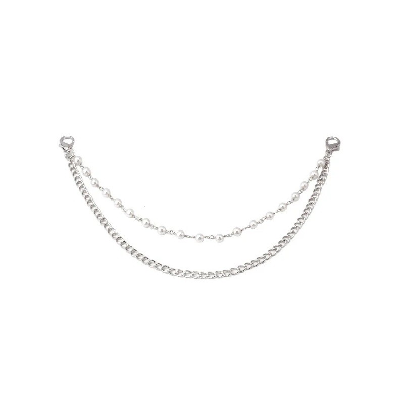 Chaîne décorative double pour sac avec perles 26 x 31 cm Alliage métallique Chaîne décorative argentée pour sac anse courte de remplacement