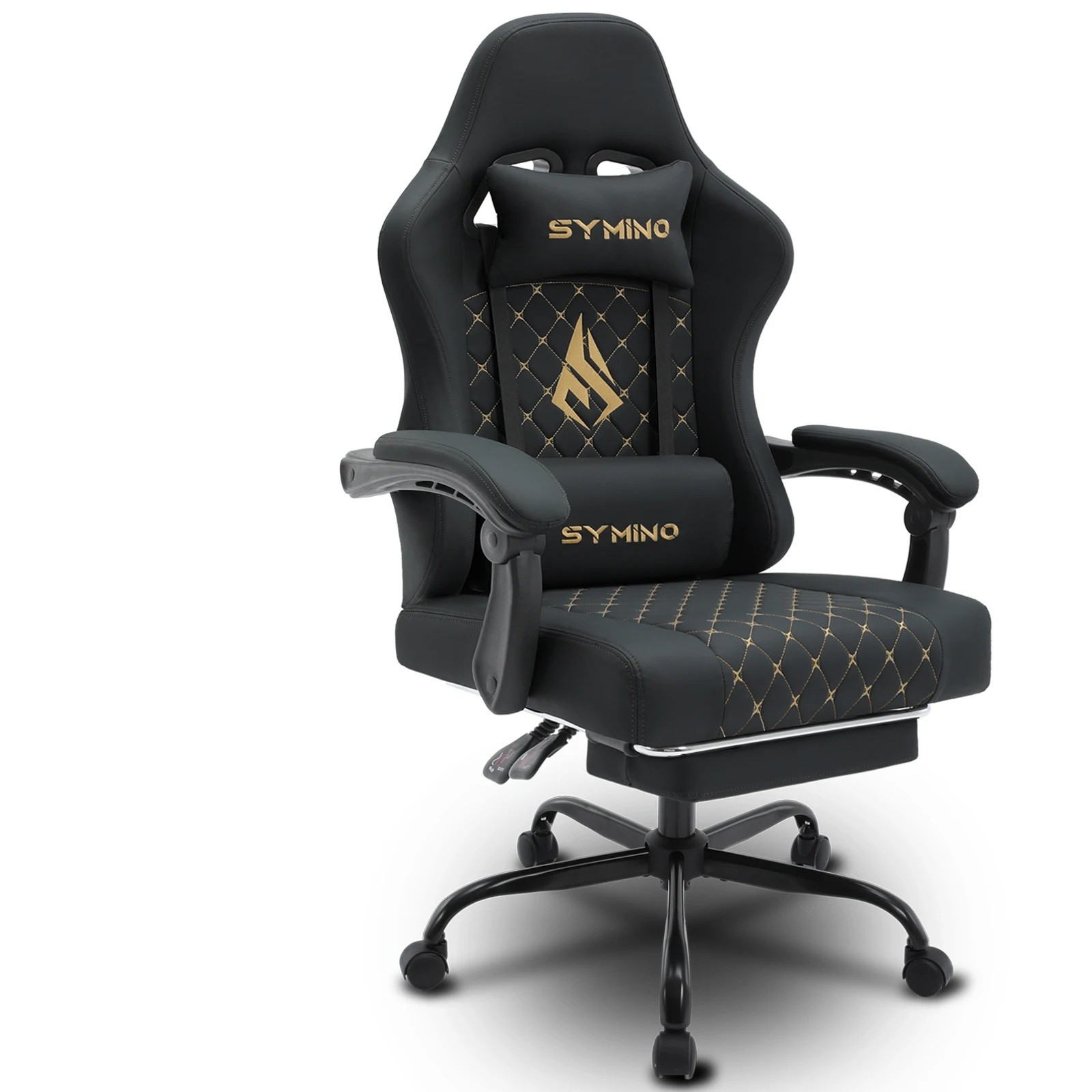 Chaise de bureau et de jeu avec repose-pieds escamotable 119-127 x 52 x 49 cm Accoudoirs réglables Appui-lombaire et appui-tête