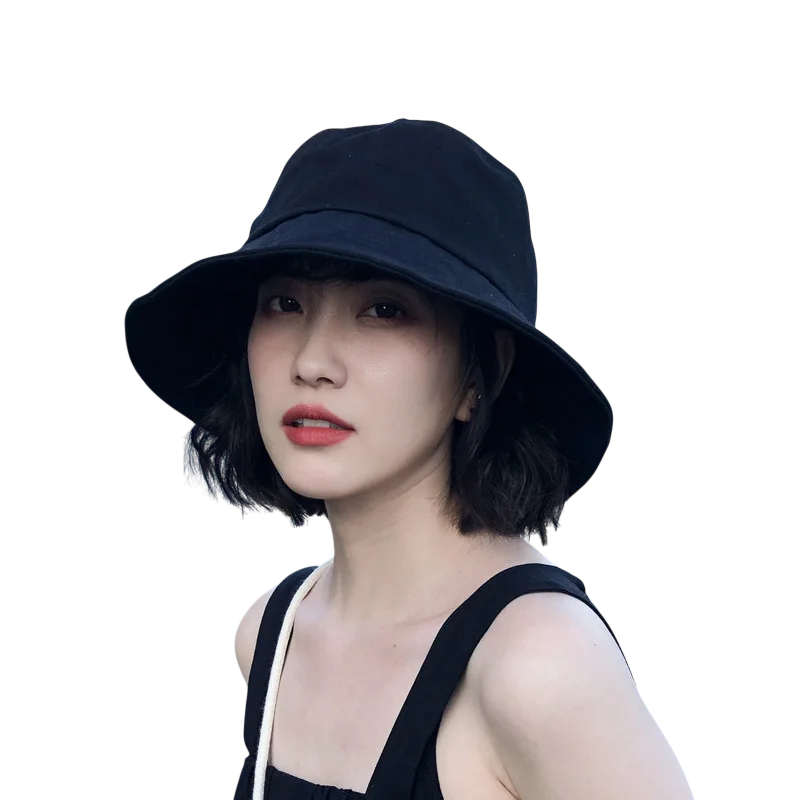 Chapeau d'été pour femmes 25 x 22 x 3 cm Chapeau de soleil noir en coton léger et respirant, chapeau de mode pour la plage, les voyages et le jardin