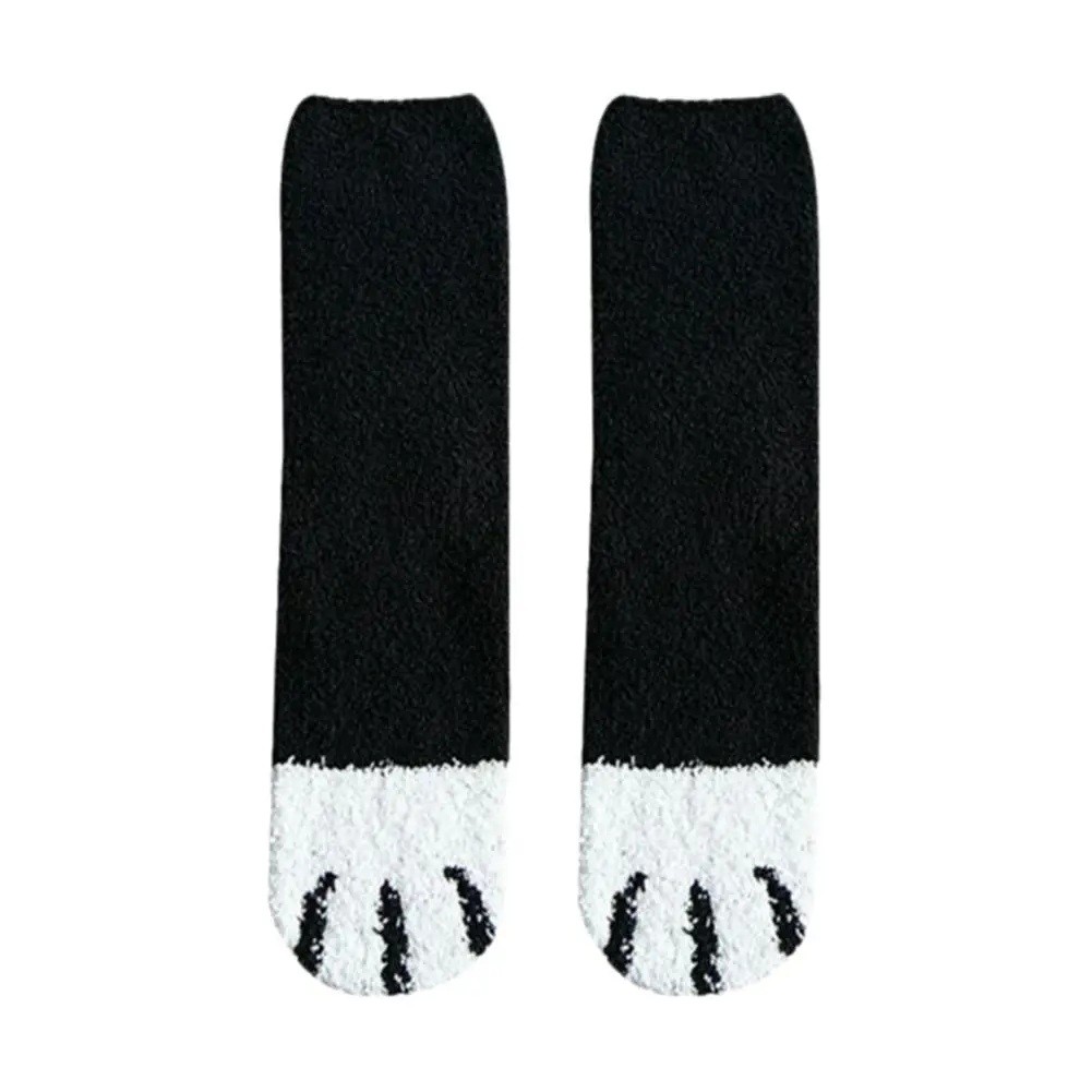 Chaussettes d'hiver pour femmes chaudes et moelleuses unies taille EU 36-42 en coton doux et polyester motif empreintes de chat chaudes chaussettes confortables pour la maison une paire