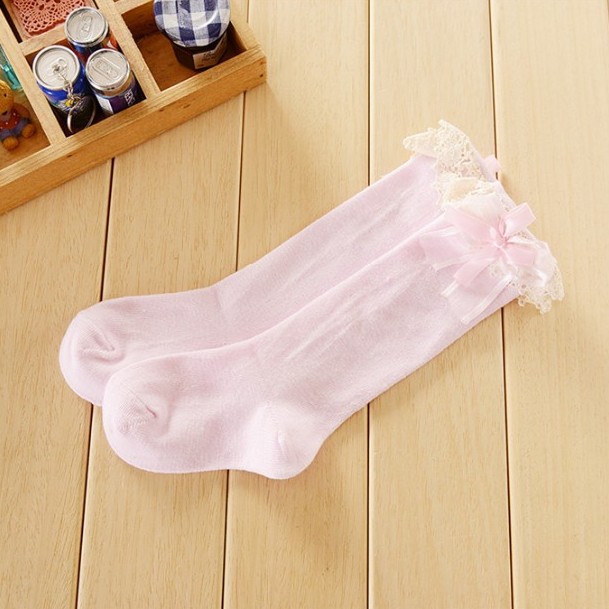 Chaussettes montantes pour filles avec volants et nœud