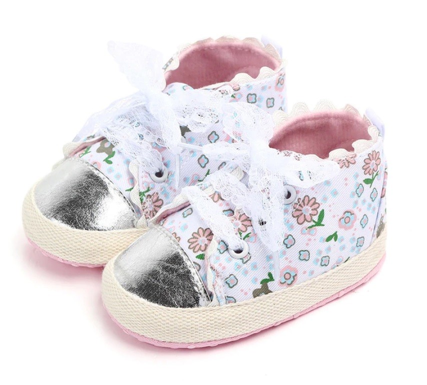Les lacets sont en dentelle. Ces chaussons iront à merveille à tous les petits pieds de filles !