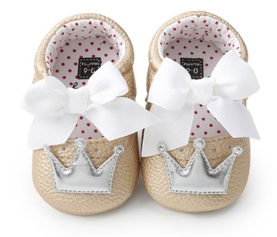 Les chaussons en cuir pour filles avec une couronne conviendront à toutes les belles princesses !