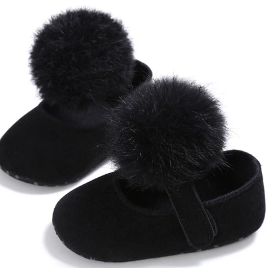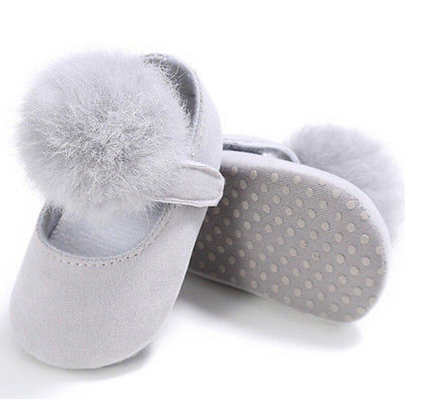 Les chaussons pour filles avec pompon seront un excellent accessoire de mode pour les vêtements de nouveau-né dans la poussette.