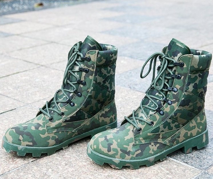 Les chaussures sont en motif camouflage et peuvent être utilisées au travail ainsi que comme chaussures de loisirs.