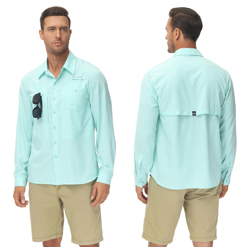 Chemise pour homme en polyester à manches longues et poches, offrant un look simple, un confort et une utilisation polyvalente. Description complète