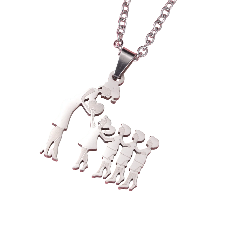 Page d’accueil Page d’accueil Bijoux et montres Bijoux et montres femme Colliers et chaînes femme Collier avec pendentif Maman avec fille et trois fils Élégant bijou familial Cadeau pour maman Symbole d'amour et de famille