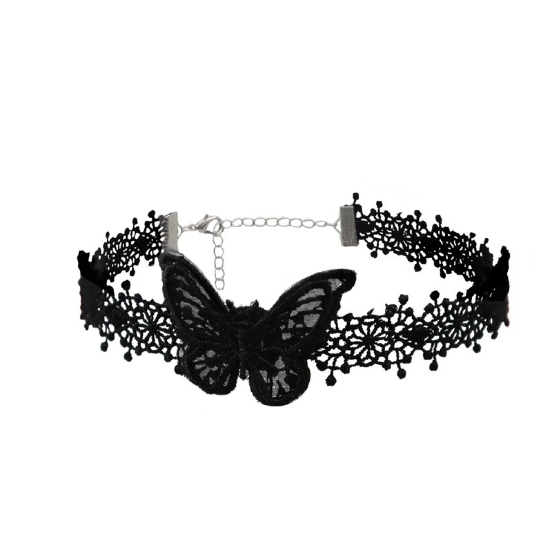 Collier choker en dentelle pour femme avec papillon et fermeture en dentelle en alliage de zinc noir accessoire de mode pour le cou pour un usage quotidien