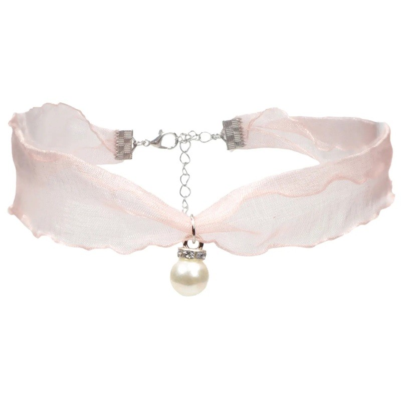 Collier choker pour femmes avec pendentif perle et fermoir en coton rose accessoire textile délicat pour un usage quotidien