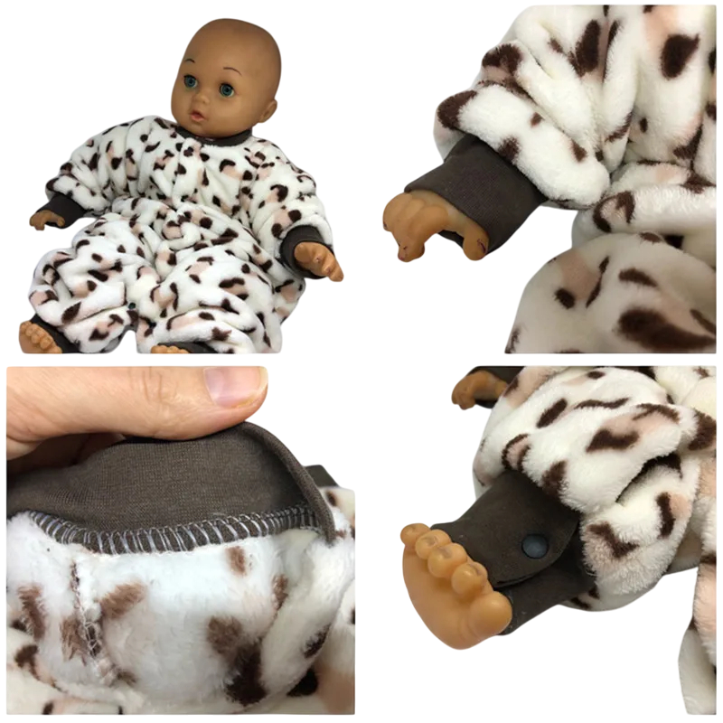 Combinaison en peluche avec motif léopard en polyester flanelle doux. Chaleureuse, confortable et idéale pour le printemps et l'hiver des bébés. Description complète