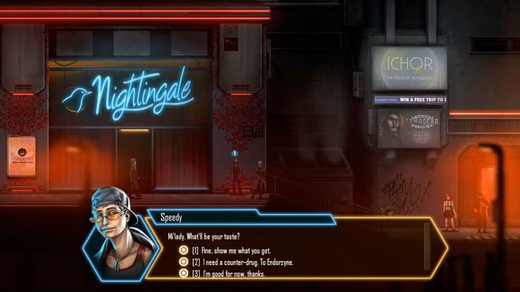 Dex, conçu comme un hommage aux RPG classiques des années 90, mis à jour pour un public moderne, vous invite à faire partie d'un univers cyberpunk vivant et respirant, alors que vous décidez quel chemin ultime vous emprunterez.