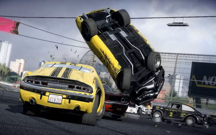 Action de course palpitante sans règles avec des moments définitifs qui ne peuvent être vécus qu'avec une véritable simulation physique. Soyez témoin de combats fous de coude à coude sur des circuits à grande vitesse, affrontez un chaos de destruction totale sur des terrains fous avec des intersections et un trafic venant en sens inverse ou lancez-vous dans une domination de démolition dans des arènes de derby.