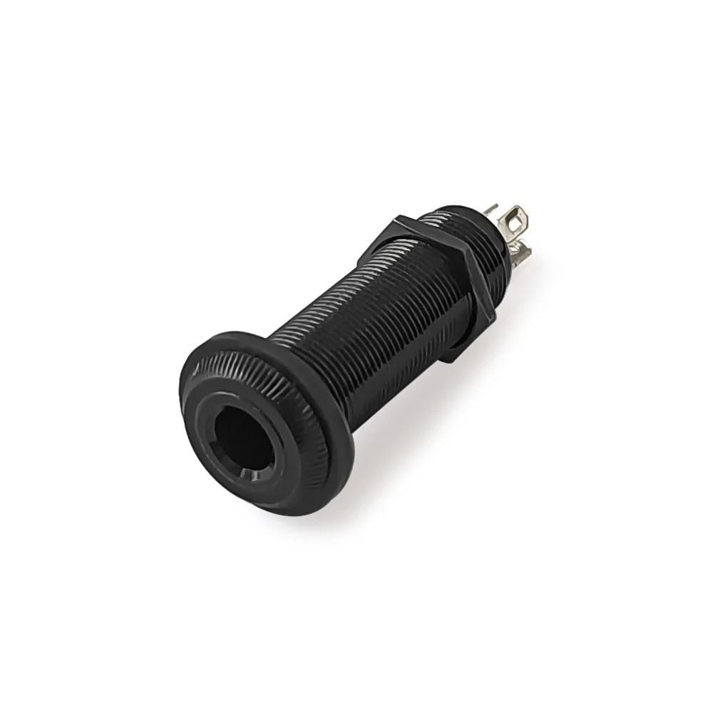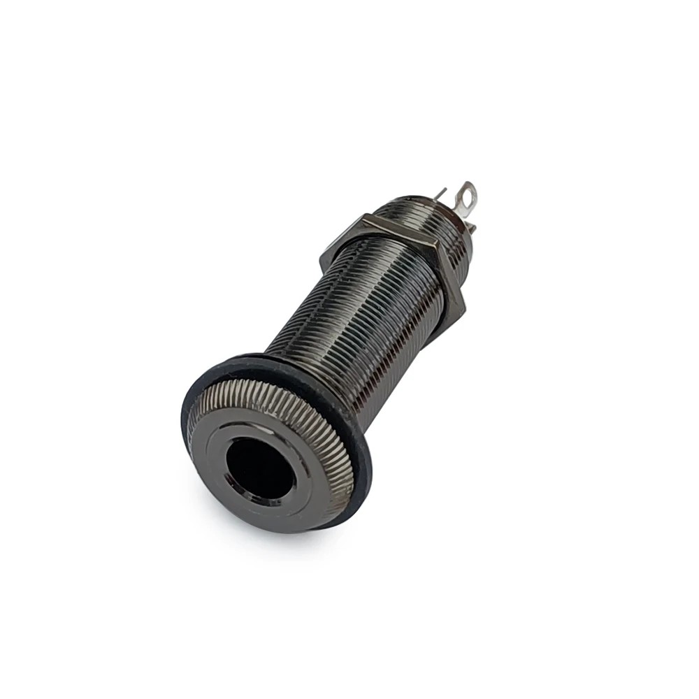 Sa construction anti-bruit minimise les interférences et le bruit, garantissant ainsi un transfert audio clair et stable. Il est adapté pour être utilisé comme jack d'entrée ou de sortie sur les corps de guitare et les planches à pédales. Le connecteur a un diamètre universel de 6,35 mm (1/4 pouce), ce qui le rend compatible avec la plupart des câbles audio courants et des équipements musicaux.