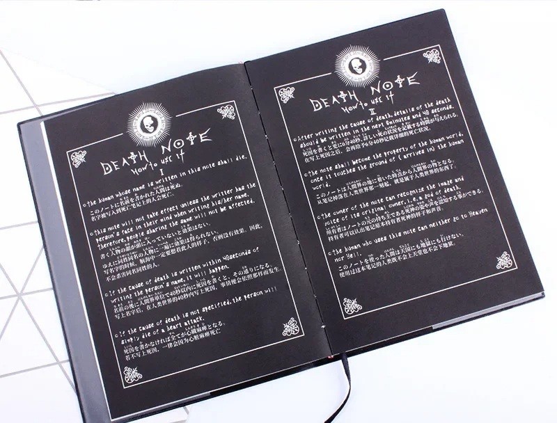 Réplique réalisée par un fan du célèbre carnet de l’anime Death Note, incluant les pages de règles. Idéal comme cadeau ou objet de collection. Description complète