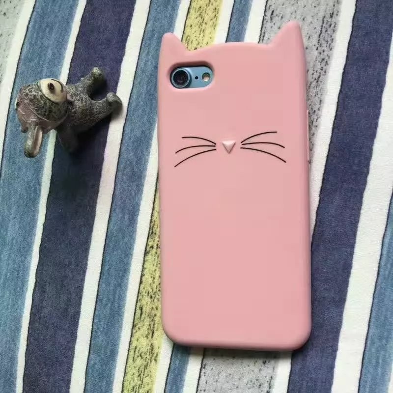 La coque est en forme de chat, avec des oreilles de chat et un museau avec des moustaches.