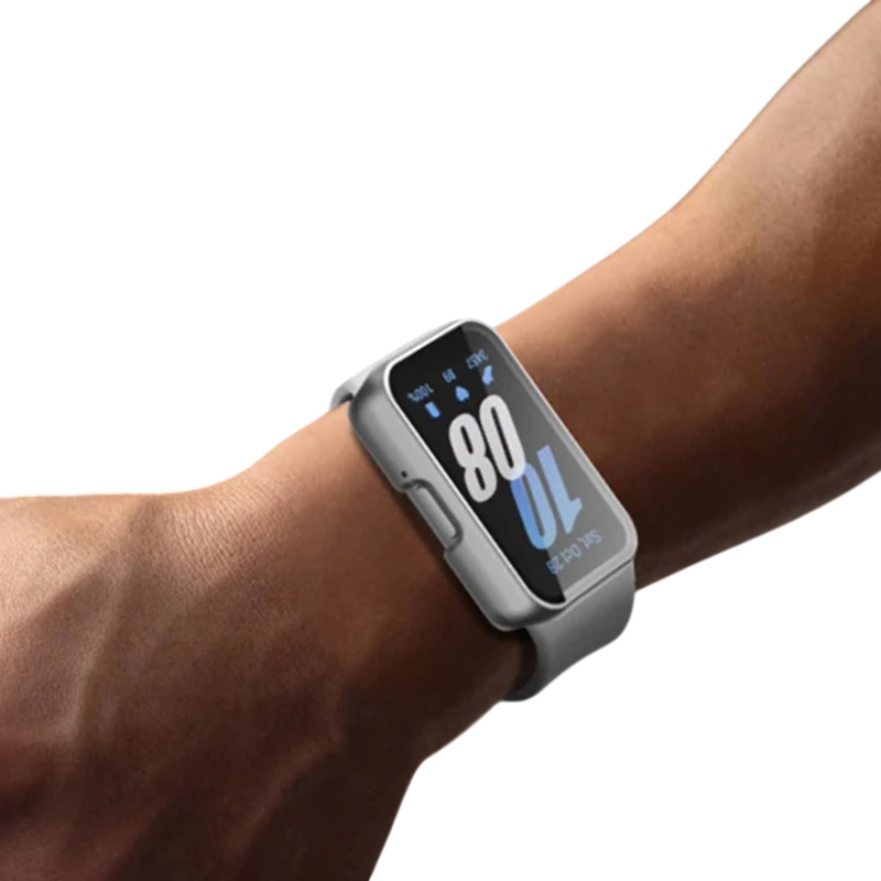 La coque de protection avec verre trempé est un accessoire pratique pour les montres intelligentes Samsung Galaxy Fit 3. Le couvercle est conçu pour protéger l'écran et le cadre de la montre contre les rayures, les chocs et l'usure quotidienne lors d'une utilisation régulière. Grâce à sa construction solide et à son traitement précis, la coque s'adapte parfaitement à la montre. Le verre trempé intégré aide également à protéger l'écran contre les dommages. Son design léger préserve le confort de port tout en maintenant la pleine fonctionnalité de la montre.
