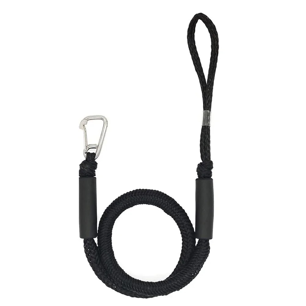 Corde bungee noire solide avec une capacité de charge de 1000 kg et une longueur de 1,22 m, idéale pour un amarrage et une ancrage sûrs des bateaux, kayaks, scooters et pontons. Description complète