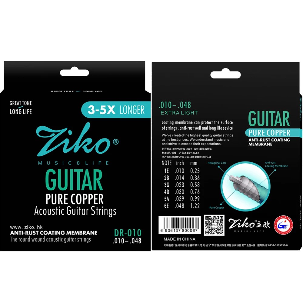 1× ensemble de cordes DR-010 (6 pcs – noyau hexagonal en cuivre pur avec finition de surface anticorrosion)