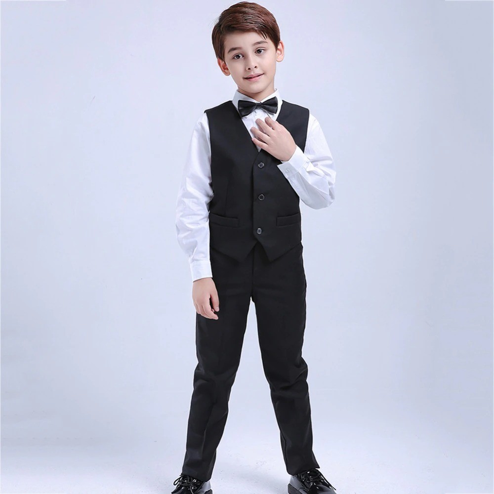 Contenu de l'emballage : 1x veste, 1x gilet, 1x pantalon, 1x cravate, 1x bretelles