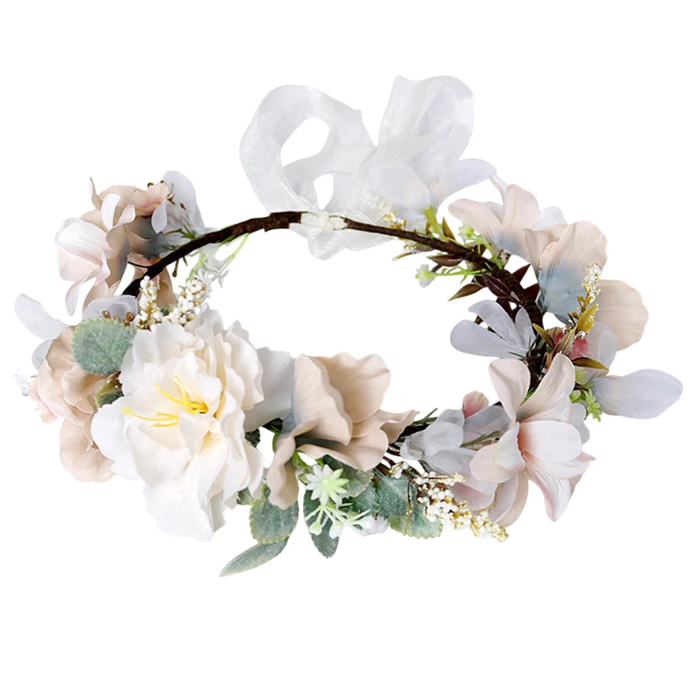 Couronne de fleurs pour cheveux Taille universelle Fleurs crème-beige Composition romantique élégante avec un ruban transparent