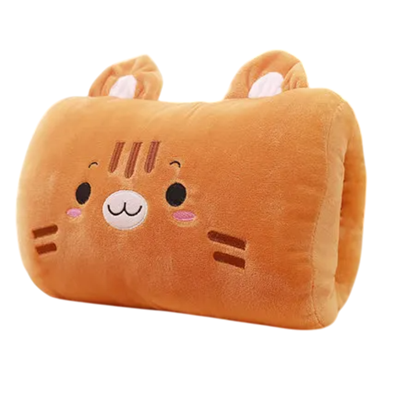 Coussin en peluche avec motif animal et ouverture pour les mains offrant un confort maximal lors des voyages, au travail ou pour se détendre à la maison. Idéal comme cadeau. Description complète