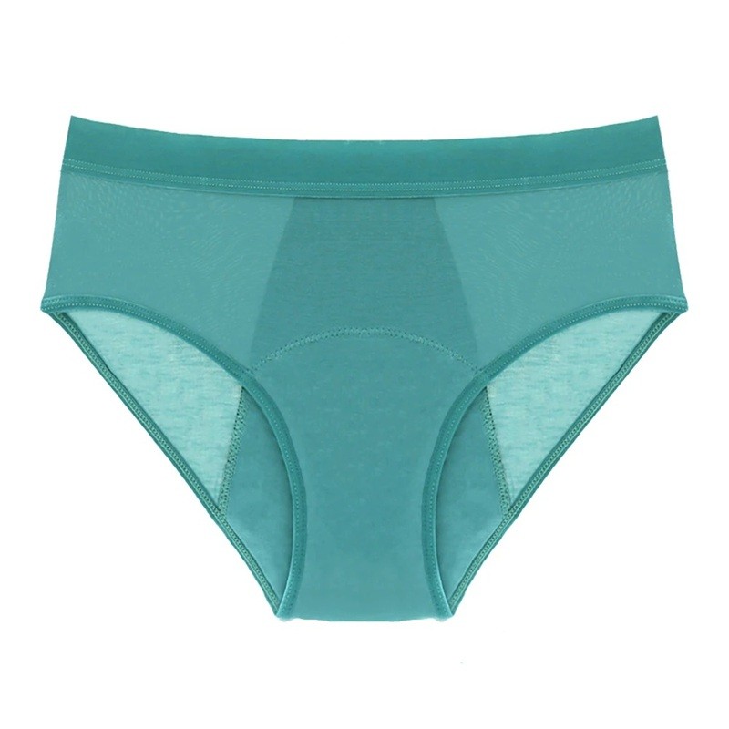 Les culottes menstruelles sont conçues comme un sous-vêtement destiné à être utilisé pendant le cycle menstruel. La construction comprend un système de matériau à quatre couches, qui aide à retenir l'humidité lors du port. Le matériau utilisé contient de la fibre de bambou, connue pour sa douceur et sa respirabilité au contact de la peau. L'élasthanne ajouté assure l'élasticité du tissu et aide les culottes à s'adapter à la forme du corps. Grâce à cette combinaison de matériaux, les culottes peuvent servir de sous-vêtement menstruel réutilisable.