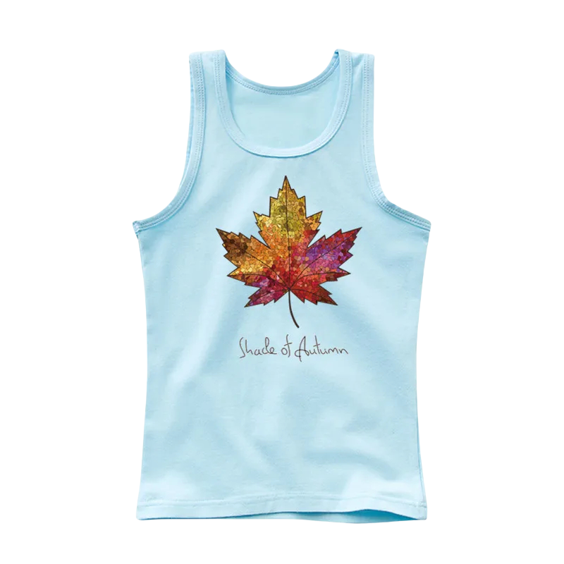 Débardeur léger pour enfants en coton doux avec impression de feuille. Haut respirant et confortable, idéal pour l'été, l'école et les loisirs, disponible en différentes couleurs. Description complète