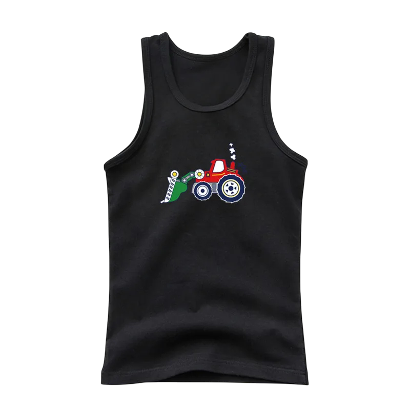 Débardeur en coton pour enfants avec impression de tracteur T-shirt uni sans manches avec col rond Haut d'été pour garçons et filles