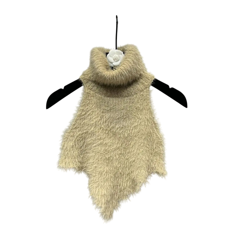 Débardeur en crochet pour femmes stylé avec col roulé et détail en fourrure, crop top idéal pour les temps frais pour des tenues modernes et superposées. Description complète