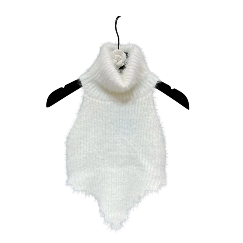 Débardeur en crochet pour femmes Crop Top avec col roulé Détail en fourrure Débardeur d'hiver stylé look tricoté polyester coton